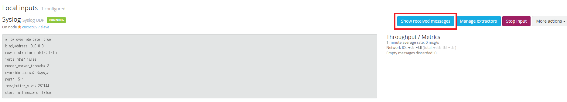 - Show received messages 클릭하면 수집되는 syslog를 볼 수 있다.