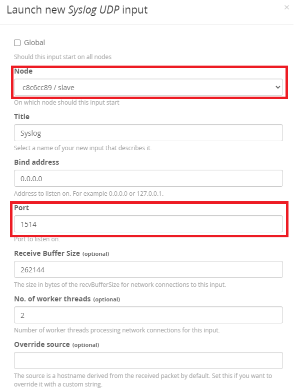 - Graylog에서는 해당 송신되는 log를 받아 처리할 수 있는 수신 포트를 설정하여야 하며 보통 syslog 수신을 위한 포트는 UDP 514가 Deault이나 Graylog 서버에서 1024 이하의 TCP/UDP 포트 번호는 권한 오류가 발생하게 된다.