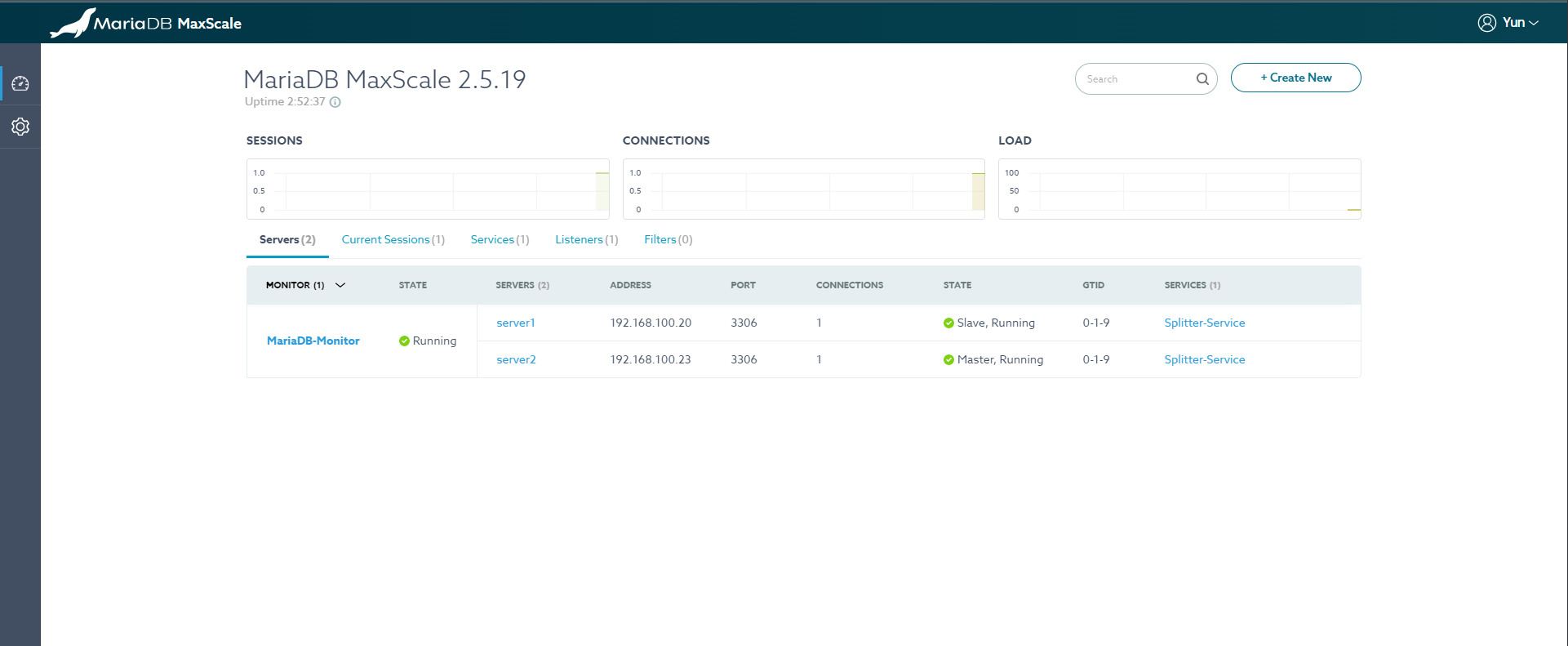 - maxctrl를 사용하여 Admin type의 user생성 ( yun / lee )