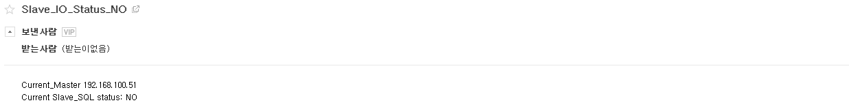 - Python을 통해서 간단하게 slave I/O, SQL Thread에 문제가 발생하였을 때 Email이 발송되도록 설정 ( Slave I/O, Slave SQL Thread가 No가 되었을 때 Email을 보냄 )
