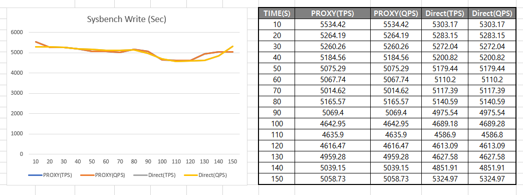 1. Write ( Sec ) => Write 성 쿼리일 경우 TPS / QPS를 보았을떄 성능은 대부분 비슷한 것으로 보인다.