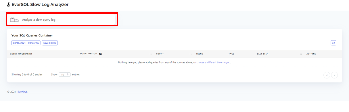 - 해당 버튼을 클릭하고 SlowLog Query 파일을 올려 놓는다.