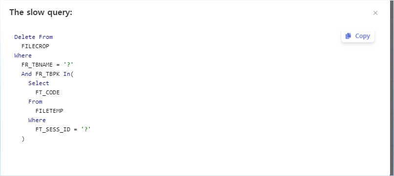 - SlowQuery Log File을 분석해서 걸린시간총합 / 평균 / 카운트 / 마지막 실행된 시점 / 전체 Query를 볼 수 있다.