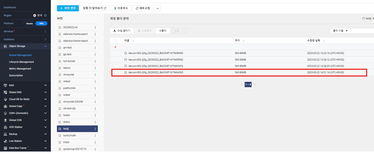 - CDB InstanceNO 가져오기 → BACKUP LIST 보기 → OBject Storage로 보내기